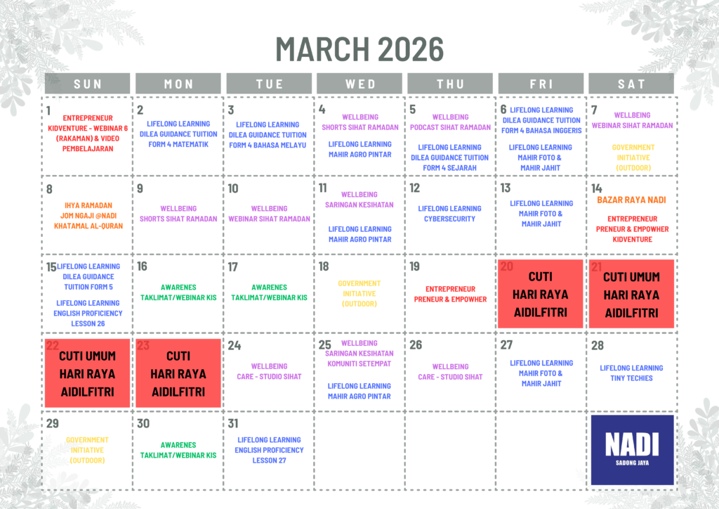 JADUAL AKTIVITI/PROGRAM BULAN FEBRUARI 2026 NADI SADONG JAYA