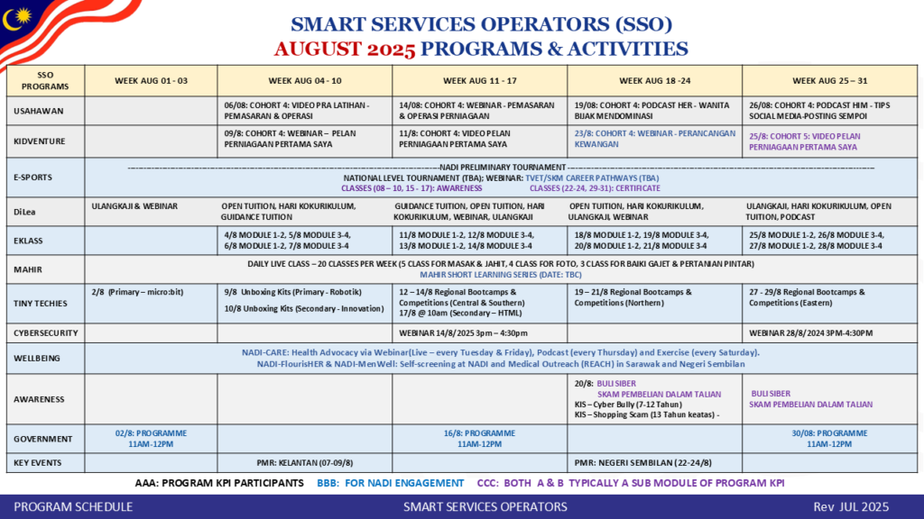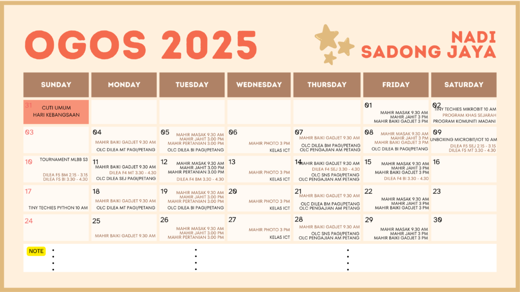 Jadual Aktiviti Bulan Ogos 2025 NADI Sadong Jaya